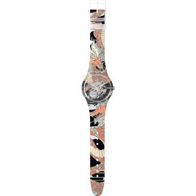 Cette montre Swatch a un boîtier Résine 41 mm en diamètre et est équipée d'un bracelet Résine. Le boîtier contient un mouvement ETA et la montre est dotée d'un cristal Acrylique..
