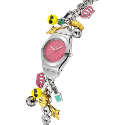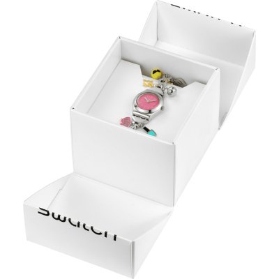 Cette montre Swatch a un boîtier Inox 25 mm en diamètre et est équipée d'un bracelet métal. Le boîtier contient un mouvement ETA et la montre est dotée d'un cristal Acrylique..