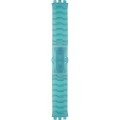 Ce bracelet de montre Swatchest fait de plastique biosourcé et est attaché à la montre au moyen de goupilles en acier. Le bracelet a une taille de 19.7 mm et se ferme au moyen d'un boucle papillon avec boutons poussoirs. Le bracelet n'a pas de support droit, ce qui signifie que ce bracelet convient uniquement aux montres énumérées ci-dessous.