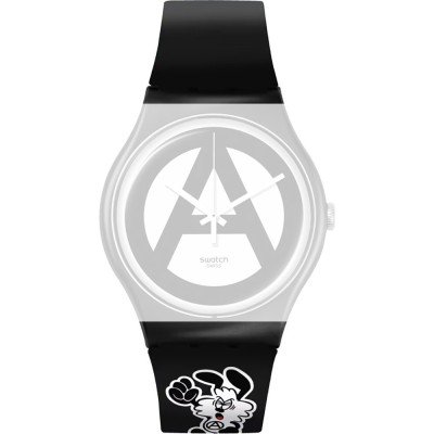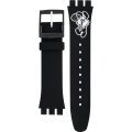 Ce bracelet de montre Swatchest fait de silicone et est attaché à la montre au moyen de goupilles en acier. Le bracelet a une taille de 19.7 mm et se ferme au moyen d'un boucle. Le bracelet n'a pas de support droit, ce qui signifie que ce bracelet convient uniquement aux montres énumérées ci-dessous.