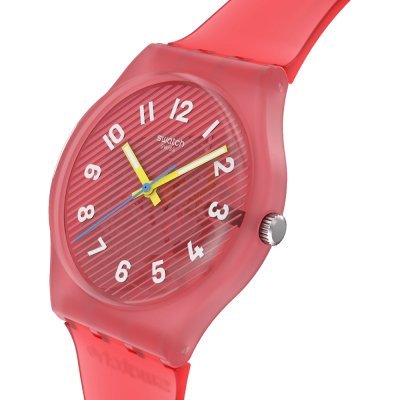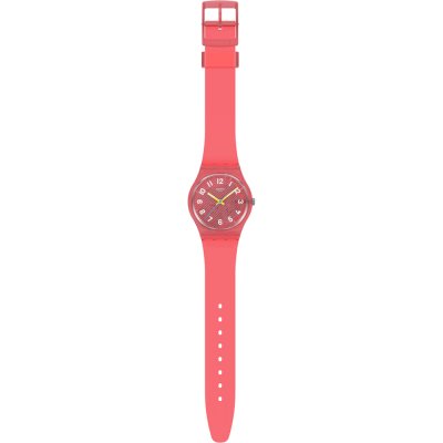 Cette montre Swatch a un boîtier Plastique biosourcé 34 mm en diamètre et est équipée d'un bracelet caoutchouc. Le boîtier contient un mouvement ETA et la montre est dotée d'un cristal Acrylique..