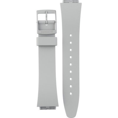Ce bracelet de montre Swatchest fait de plastique biosourcé et est attaché à la montre au moyen de goupilles en acier. Le bracelet a une taille de 21 mm et se ferme au moyen d'un boucle. Le bracelet n'a pas de support droit, ce qui signifie que ce bracelet convient uniquement aux montres énumérées ci-dessous.