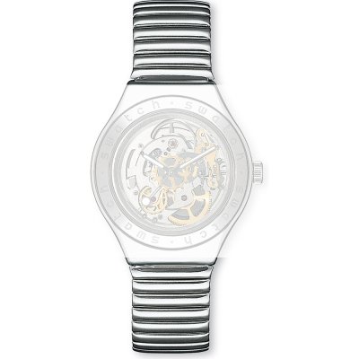 Ce bracelet de montre Swatchest fait de acier inoxydable et est attaché à la montre au moyen de goupilles en acier. Le bracelet a une taille de 17 mm. Le bracelet n'a pas de support droit, ce qui signifie que ce bracelet convient uniquement aux montres énumérées ci-dessous.