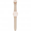 Ce bracelet de montre Swatchest fait de cuir et est attaché à la montre au moyen de goupilles en acier. Le bracelet a une taille de 19.7 mm et se ferme au moyen d'un boucle. Le bracelet n'a pas de support droit, ce qui signifie que ce bracelet convient uniquement aux montres énumérées ci-dessous.