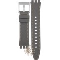 Ce bracelet de montre Swatchest fait de cuir et est attaché à la montre au moyen de goupilles en acier. Le bracelet a une taille de 18.1 mm et se ferme au moyen d'un boucle. Le bracelet n'a pas de support droit, ce qui signifie que ce bracelet convient uniquement aux montres énumérées ci-dessous.