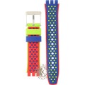 Ce bracelet de montre Swatchest fait de silicone et est attaché à la montre au moyen de goupilles en acier. Le bracelet a une taille de 18.1 mm et se ferme au moyen d'un boucle. Le bracelet n'a pas de support droit, ce qui signifie que ce bracelet convient uniquement aux montres énumérées ci-dessous.