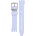 Ce bracelet de montre Swatchest fait de silicone et est attaché à la montre au moyen de goupilles en acier. Le bracelet a une taille de 17 mm et se ferme au moyen d'un boucle. Le bracelet n'a pas de support droit, ce qui signifie que ce bracelet convient uniquement aux montres énumérées ci-dessous.