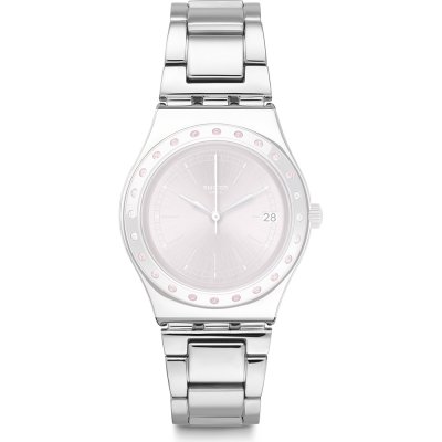 Ce bracelet de montre Swatchest fait de acier inoxydable et est attaché à la montre au moyen de goupilles en acier. Le bracelet a une taille de 17 mm et se ferme au moyen d'un boucle déployante avec boutons poussoirs et sécurité. Le bracelet n'a pas de support droit, ce qui signifie que ce bracelet convient uniquement aux montres énumérées ci-dessous.