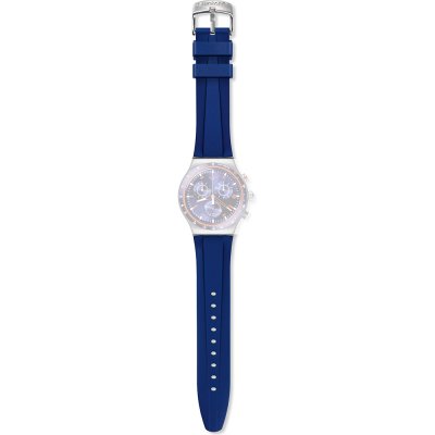 Ce bracelet de montre Swatchest fait de silicone et est attaché à la montre au moyen de goupilles en acier. Le bracelet a une taille de 21 mm et se ferme au moyen d'un boucle. Le bracelet n'a pas de support droit, ce qui signifie que ce bracelet convient uniquement aux montres énumérées ci-dessous.