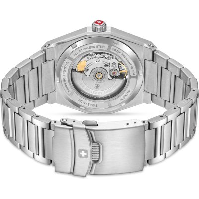 Cette montre Swiss Military Hanowa a un boîtier Inox 14 mm en diamètre et est équipée d'un bracelet Inox. Le boîtier contient un mouvement Soprod et la montre est dotée d'un cristal Saphire..