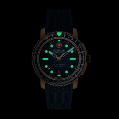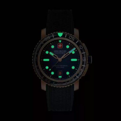 La montre est 20 ATM. Cela signifie que la montre est adaptée à la plongée. La montre est livrée avec la Swiss Military 3+2.