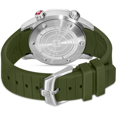Cette montre Swiss Military Hanowa a un boîtier Inox 43 mm en diamètre et est équipée d'un bracelet caoutchouc. Le boîtier contient un mouvement Ronda et la montre est dotée d'un cristal Saphire..