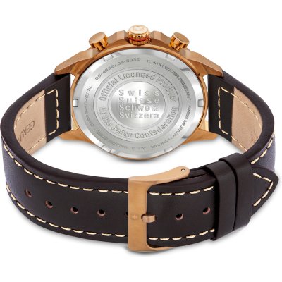 Cette montre Swiss Military Hanowa a un boîtier Inox 45 mm en diamètre et est équipée d'un bracelet cuir. Le boîtier contient un mouvement Ronda et la montre est dotée d'un cristal Saphire..