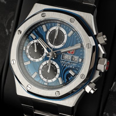 La montre est 10 ATM. Cela signifie que la montre est adaptée à la natation. La montre est livrée avec la Swiss Military 3+2.