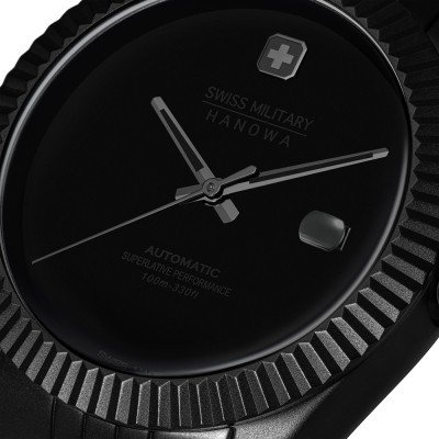 Cette montre Swiss Military Hanowa a un boîtier Inox 41 mm en diamètre et est équipée d'un bracelet Inox. Le boîtier contient un mouvement Soprod et la montre est dotée d'un cristal Saphire..