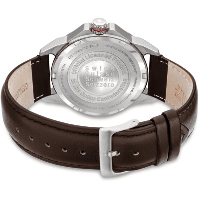 Cette montre Swiss Military Hanowa a un boîtier Inox 45 mm en diamètre et est équipée d'un bracelet cuir. Le boîtier contient un mouvement Ronda et la montre est dotée d'un cristal Saphire..