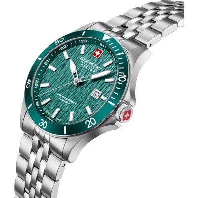 Cette montre Swiss Military Hanowa a un boîtier Inox 42 mm en diamètre et est équipée d'un bracelet Inox. Le boîtier contient un mouvement Ronda et la montre est dotée d'un cristal Saphire..