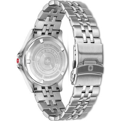 Cette montre Swiss Military Hanowa a un boîtier Inox 42 mm en diamètre et est équipée d'un bracelet Inox. Le boîtier contient un mouvement Ronda et la montre est dotée d'un cristal Saphire..