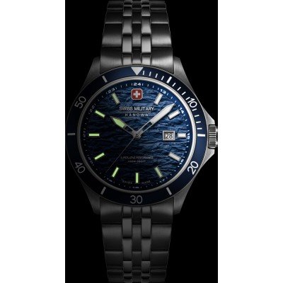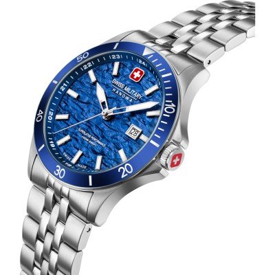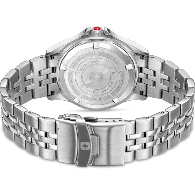 Cette montre Swiss Military Hanowa a un boîtier Inox 42 mm en diamètre et est équipée d'un bracelet Inox. Le boîtier contient un mouvement Ronda et la montre est dotée d'un cristal Saphire..