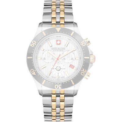 Ce bracelet de montre Swiss Military Hanowaest fait de acier inoxydable et est attaché à la montre au moyen de Épingles à ressort. Le bracelet a une taille de 22 mm et se ferme au moyen d'un boucle déployante avec boutons poussoirs et sécurité. Le bracelet n'a pas de support droit, ce qui signifie que ce bracelet convient uniquement aux montres énumérées ci-dessous.