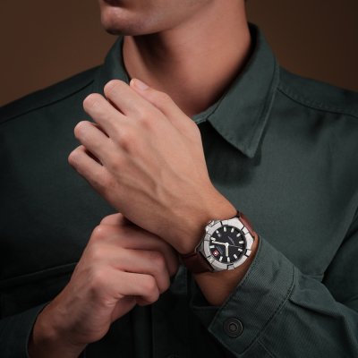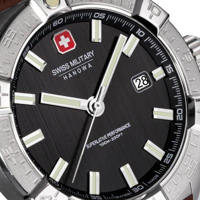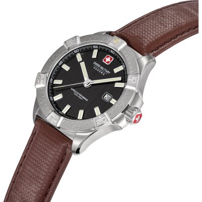 Cette montre Swiss Military Hanowa a un boîtier Inox 42 mm en diamètre et est équipée d'un bracelet cuir. Le boîtier contient un mouvement Ronda et la montre est dotée d'un cristal Saphire..