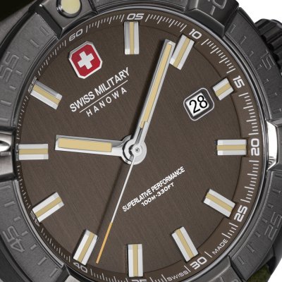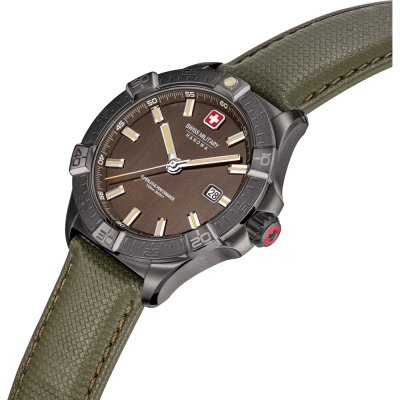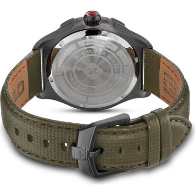 La montre est 10 ATM. Cela signifie que la montre est adaptée à la natation. La montre est livrée avec la Swiss Military 3+2.