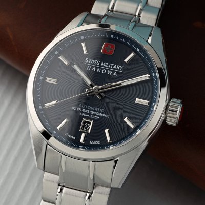 La montre est 10 ATM. Cela signifie que la montre est adaptée à la natation. La montre est livrée avec la Swiss Military 3+2.