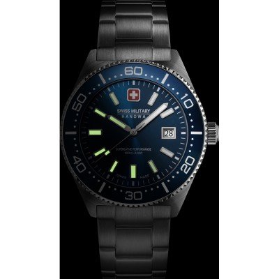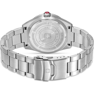 Cette montre Swiss Military Hanowa a un boîtier Inox 43 mm en diamètre et est équipée d'un bracelet Inox. Le boîtier contient un mouvement Ronda et la montre est dotée d'un cristal Saphire..