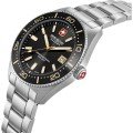 Cette montre Swiss Military Hanowa a un boîtier Inox 43 mm en diamètre et est équipée d'un bracelet Inox. Le boîtier contient un mouvement Ronda et la montre est dotée d'un cristal Saphire..