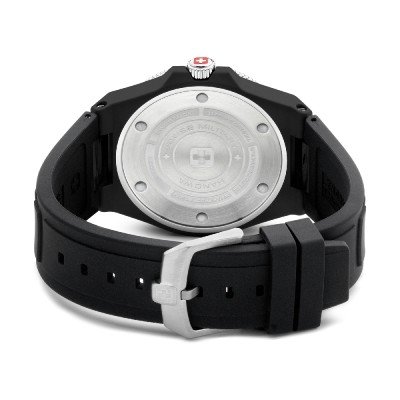 Cette montre Swiss Military Hanowa a un boîtier Marée plastique océanique 45 mm en diamètre et est équipée d'un bracelet caoutchouc. Le boîtier contient un mouvement Ronda et la montre est dotée d'un cristal Saphire..
