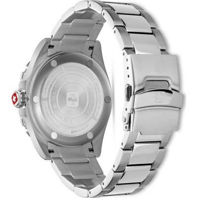 Cette montre Swiss Military Hanowa a un boîtier Inox 44 mm en diamètre et est équipée d'un bracelet Inox. Le boîtier contient un mouvement Ronda et la montre est dotée d'un cristal Saphire..