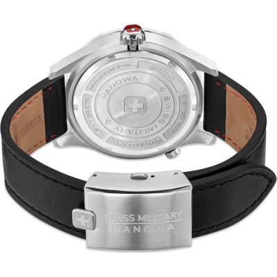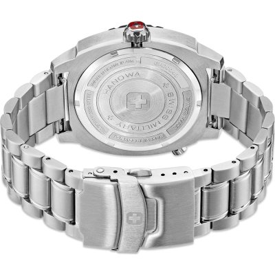 Cette montre Swiss Military Hanowa a un boîtier Inox 43 mm en diamètre et est équipée d'un bracelet Inox. Le boîtier contient un mouvement Ronda et la montre est dotée d'un cristal Saphire..
