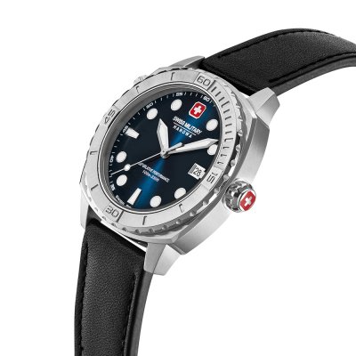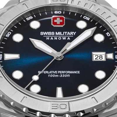 La montre est 10 ATM. Cela signifie que la montre est adaptée à la natation. La montre est livrée avec la Swiss Military 3+2.