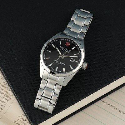 Cette montre Swiss Military Hanowa a un boîtier Inox 41 mm en diamètre et est équipée d'un bracelet Inox. Le boîtier contient un mouvement Ronda et la montre est dotée d'un cristal Saphire..
