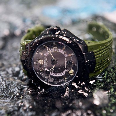 La montre est 5 ATM. Cela signifie que la montre est adaptée à la douche. La montre est livrée avec la Swiss Military 3+2.