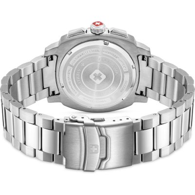 Cette montre Swiss Military Hanowa a un boîtier Inox 41 mm en diamètre et est équipée d'un bracelet Inox. Le boîtier contient un mouvement Ronda et la montre est dotée d'un cristal Saphire..