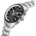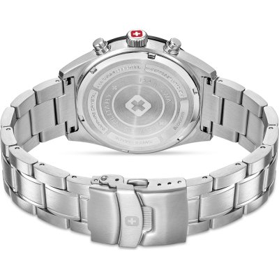 Cette montre Swiss Military Hanowa a un boîtier Inox 43 mm en diamètre et est équipée d'un bracelet Inox. Le boîtier contient un mouvement Ronda et la montre est dotée d'un cristal Saphire..