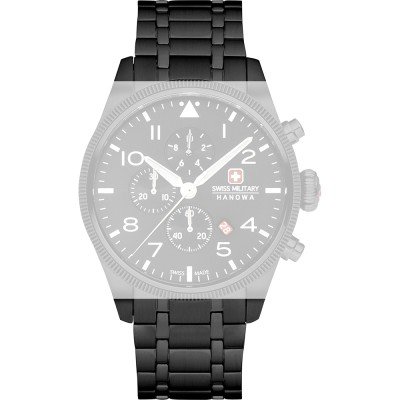 Ce bracelet de montre Swiss Military Hanowaest fait de acier inoxydable et est attaché à la montre au moyen de Épingles à ressort. Le bracelet a une taille de 22 mm et se ferme au moyen d'un boucle déployante avec boutons poussoirs et sécurité. Le bracelet n'a pas de support droit, ce qui signifie que ce bracelet convient uniquement aux montres énumérées ci-dessous.