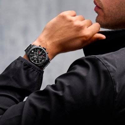 Cette montre Swiss Military Hanowa a un boîtier Inox 43 mm en diamètre et est équipée d'un bracelet Inox. Le boîtier contient un mouvement Ronda et la montre est dotée d'un cristal Saphire..