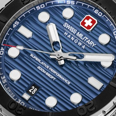 La montre est 20 ATM. Cela signifie que la montre est adaptée à la plongée. La montre est livrée avec la Swiss Military 3+2.