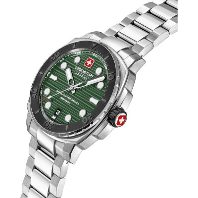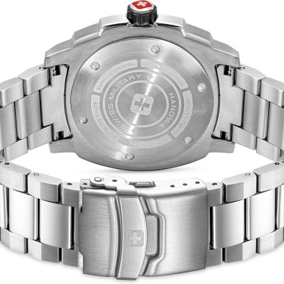 Cette montre Swiss Military Hanowa a un boîtier Inox 40 mm en diamètre et est équipée d'un bracelet Inox. Le boîtier contient un mouvement Ronda et la montre est dotée d'un cristal Saphire..