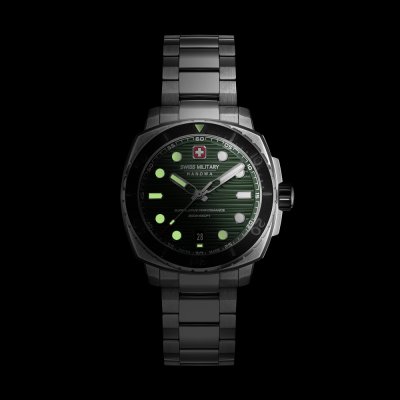 La montre est 20 ATM. Cela signifie que la montre est adaptée à la plongée. La montre est livrée avec la Swiss Military 3+2.