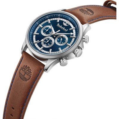 Cette montre Timberland a un boîtier Inox 45 mm en diamètre et est équipée d'un bracelet cuir. Le boîtier contient un mouvement Seiko et la montre est dotée d'un cristal Minéral..