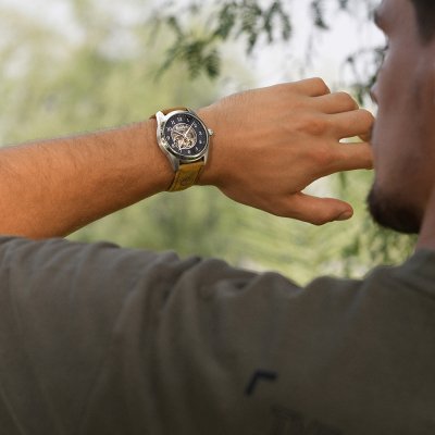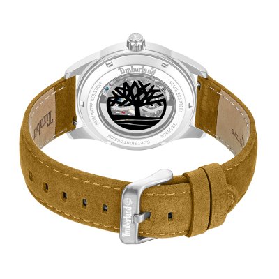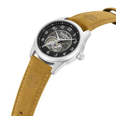 Cette montre Timberland a un boîtier Inox 43 mm en diamètre et est équipée d'un bracelet cuir. Le boîtier contient un mouvement Seagull et la montre est dotée d'un cristal Minéral..