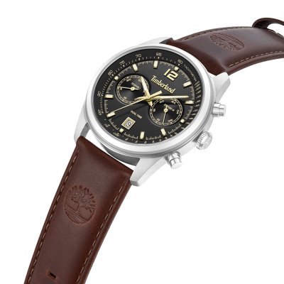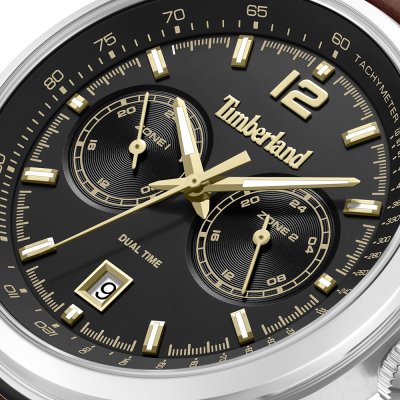 Cette montre Timberland a un boîtier Inox 45 mm en diamètre et est équipée d'un bracelet cuir. Le boîtier contient un mouvement Seiko Instruments Inc. et la montre est dotée d'un cristal Minéral..