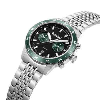Cette montre Timberland a un boîtier Inox 44 mm en diamètre et est équipée d'un bracelet Inox. Le boîtier contient un mouvement Seiko Instruments Inc. et la montre est dotée d'un cristal Minéral..