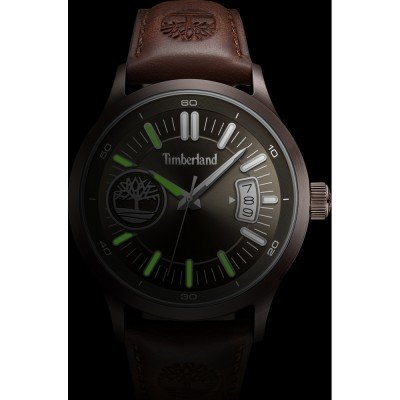 Cette montre Timberland a un boîtier Inox 45 mm en diamètre et est équipée d'un bracelet cuir. Le boîtier contient un mouvement Seiko Instruments Inc. et la montre est dotée d'un cristal Minéral..
