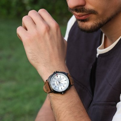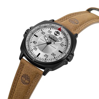 Cette montre Timberland a un boîtier Alliage de Métal 48 mm en diamètre et est équipée d'un bracelet cuir. Le boîtier contient un mouvement Seiko et la montre est dotée d'un cristal Minéral..