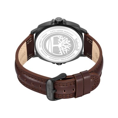 Cette montre Timberland a un boîtier Alliage de Métal 48 mm en diamètre et est équipée d'un bracelet cuir. Le boîtier contient un mouvement Seiko et la montre est dotée d'un cristal Minéral..
