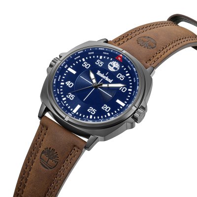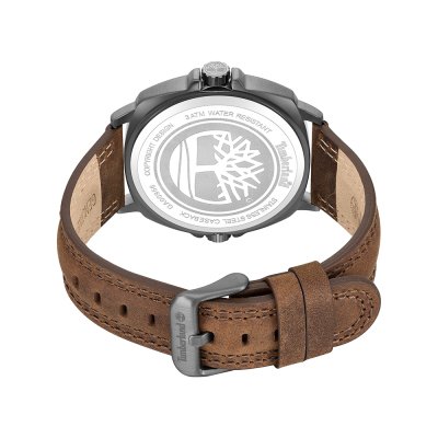 Cette montre Timberland a un boîtier Alliage de Métal 48 mm en diamètre et est équipée d'un bracelet cuir. Le boîtier contient un mouvement Seiko et la montre est dotée d'un cristal Minéral..